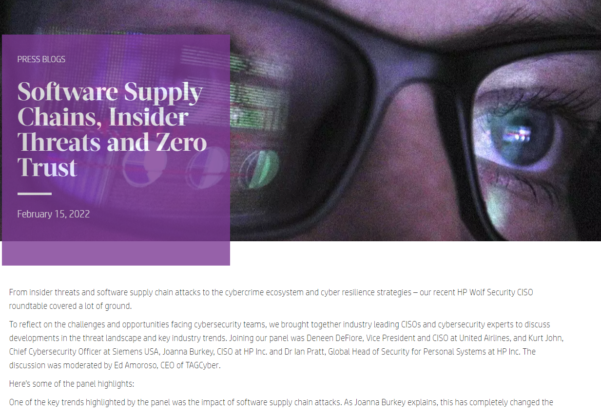 Cybersecurity has always been an organizational threat, but it’s increased as even small businesses have so much invested in digital assets. Read this eye-opening blog featuring CISOs from some of the world’s largest corporations, including Joanna Burkey of HP, as they discuss the threat landscape at the HP Wolf Security CISO roundtable. Read More…