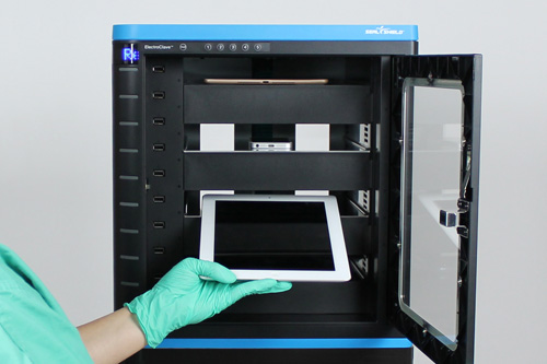 ElectroClave™ automates mobile device management (MDM) by providing UV-C disinfection, smart charging technology and RFID tracking; providing vital oversight to both IT Administrators and Healthcare workers.